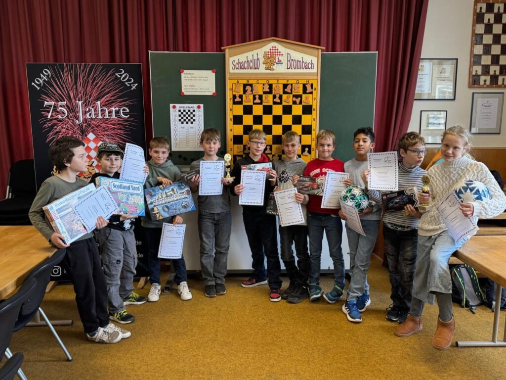 Am 27.09.2025 fand in Brombach der erste Spieltag des DWZ Grand-Prix Hochrhein statt. Der noch kleine TVK schickte mit Ivonne, Georg, Elias, Claudius und Marvin die größte Delegation aus dem Landkreis Waldshut (im Vergleich: Bonndorf 4, Laufenburg 3, Waldshut 2). In der ersten Runde konnte Ivonne einen schönen Sieg einfahren und in der zweiten Runde schafften Claudius einen schönen Sieg und Marvin ein Remis gegen einen Erwachsenen. Damit sind die ersten Wertungszahlen für Elias, Claudius und Marvin in greifbarer Nähe.